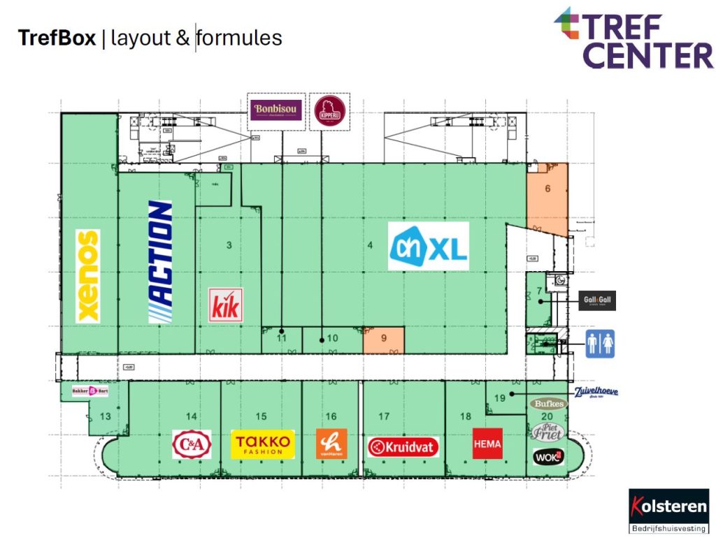 De Trefbox (Gebouw 6), centraal gelegen in het Trefcenter, ondergaat momenteel een complete metamorfose naar een modern, overdekt winkelcentrum met meerdere retailformules. De vernieuwde passage krijgt drie hoofdentrees, met daartussen moderne winkelunits van diverse afmetingen. De ligging van Unit 6 – direct naast de hoofdingang en tussen grote trekkers als AH XL en Lidl – garandeert maximale zichtbaarheid én passantenstroom.